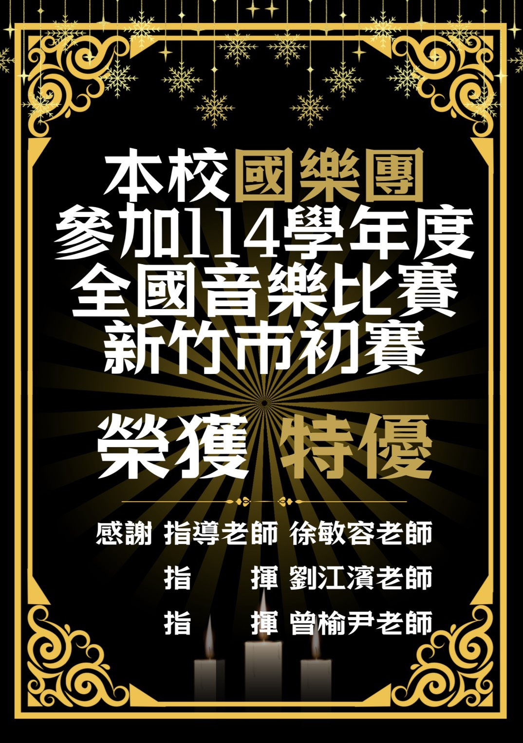 本校【國樂團】榮獲114學年度音樂比賽市賽特優
