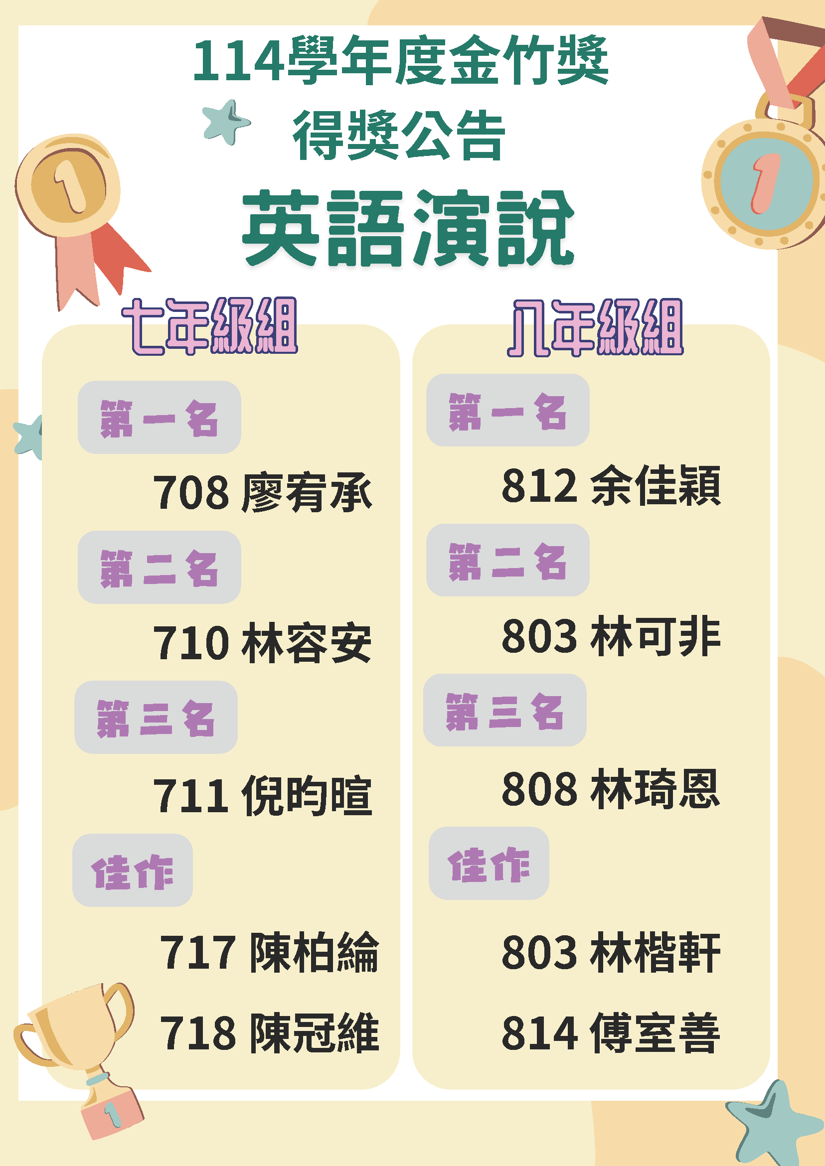 恭喜獲獎同學,感謝老師辛勤指導♥