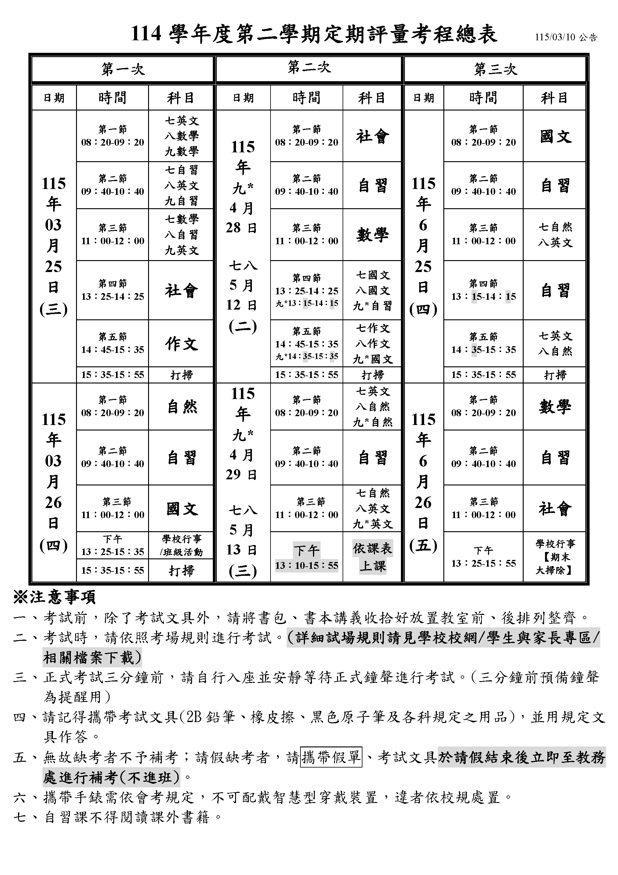 各年級範圍請見附件。