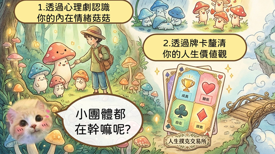 「YOU LIFE,YOU DECIDE你的生命,由你決定」是一個幫助你「更認識自己、更信任自己、也更清楚自己人生方向」的小團體。我們在這裡創造一個安心的空間,透過牌卡、心理劇、冥想、體驗遊戲等方式,從「照顧自己」開始到「發現自己的內在優勢」並在生活中帶著優勢去「執行成長改變計劃」。透過小團體可以讓你練習做出更貼近內心的選擇,在日常裡減少內耗並體驗更多的平靜與踏實感。人生沒有標準答案,只有一起成長、彼此支持,用行動證明——你會發現你的生命更有韌性也更有光。