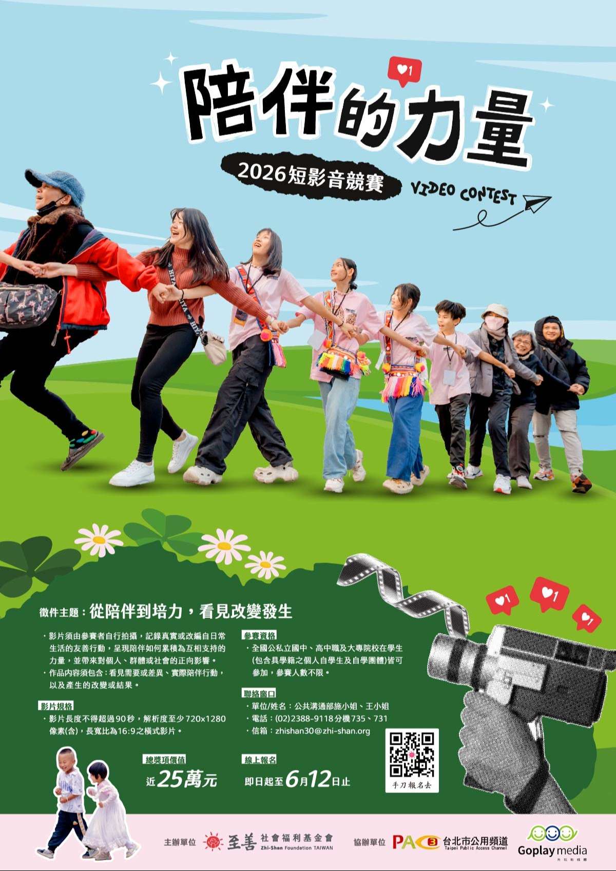 | 一、 | 本會(https://www.zhi-shan.org/)長期從事亞洲四地兒少發展工作,為響應《兒童權利公約》(CRC)禁止歧視原則,自2023年起推動「校園族群友善」倡議,並自2025年辦理短影音競賽。2026年以「從陪伴到培力,看見改變發生」為主題,邀請全國學生共同參與,展現青少年世代推動友善行動的能量。 |