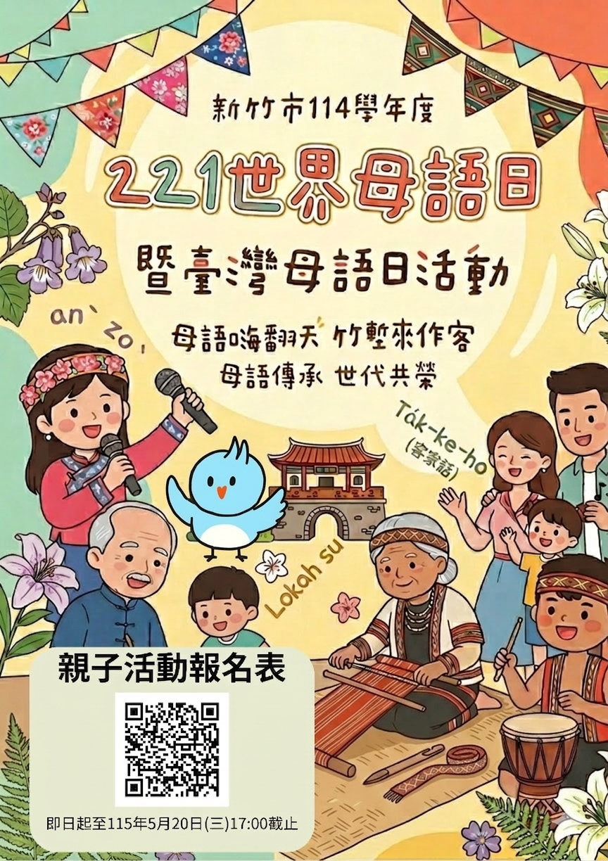 | 主旨: | 新竹市政府辦理「新竹市世界母語日暨歡樂臺灣母語博覽會」歡迎參加。 |